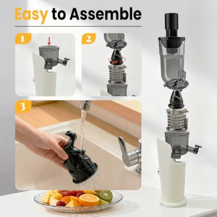 【Super Easy Cleaning】No Scrubbing Wars! We know masticating juicer machines can be a hassle to clean—but not this slow juicer. Its detachable filter rinses off fast, no stuck-on pulp to fight. Finish cleaning this juicer in minutes, then get back to your day.