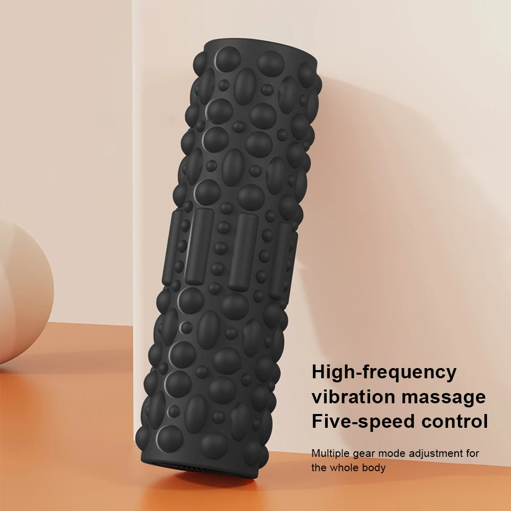 Electric Vibrating Foam Roller Massage Column Rechargeable Exercise Roller 5 Modes Tissue Massager for Bodybuilding